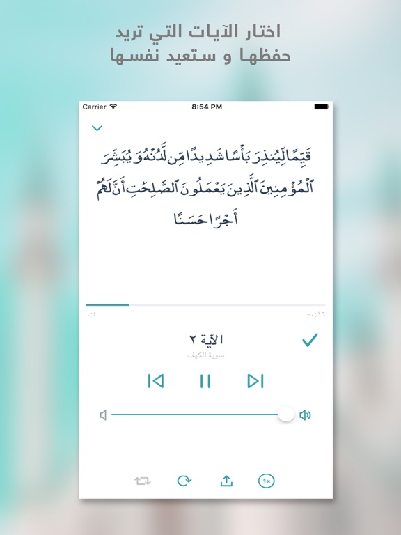 * إعادة قراءة تلقائية عند الإنتهاء من الآيات المختارة