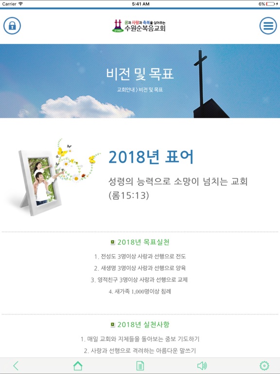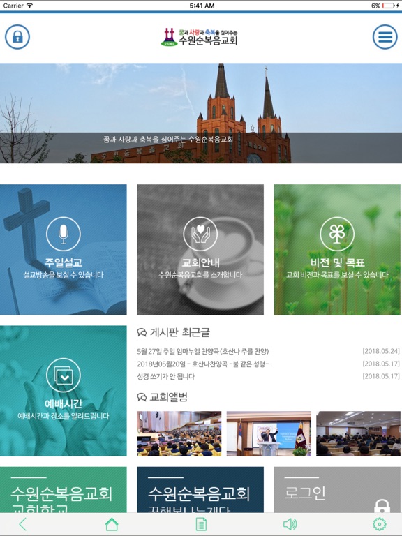 * 100% 연동형 앱 : 홈페이지에 등록된 내용, 게시물, 설교영상, 사진 등의 콘텐츠를 앱과 100% 연동하여 실시간으로 앱을 통해 확인할 수 있습니다.