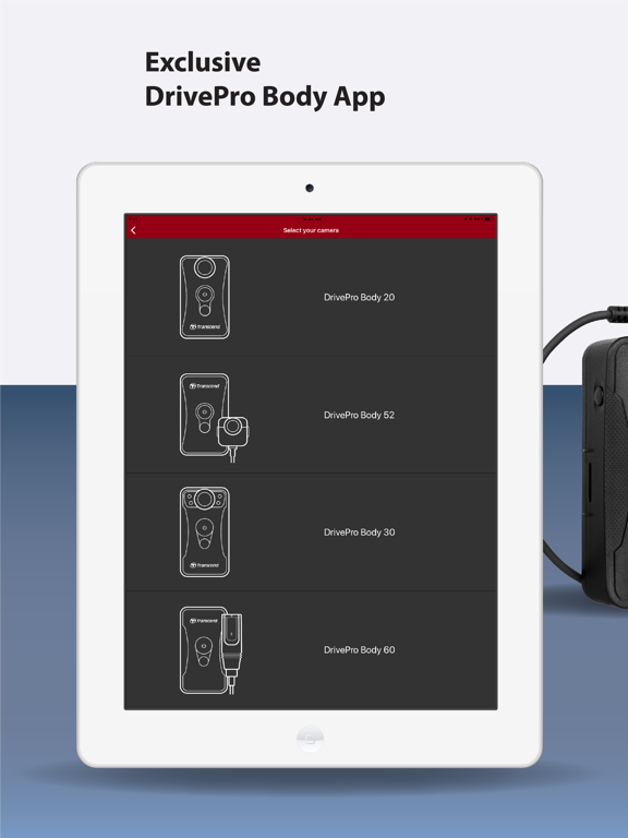 Transcend's DrivePro Body App is designed specifically for the DrivePro Body cameras featuring Wi-Fi connectivity. It allows streaming and downloading of recorded files to mobile devices quickly and conveniently. Get started by connecting your mobile device to the DrivePro Body camera's Wi-Fi now! Supported models: - DrivePro Body 20 - DrivePro Body 30 - DrivePro Body 52 - DrivePro Body 60