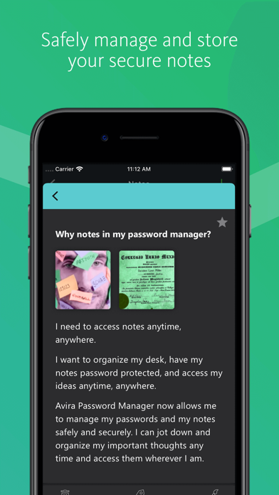 Avira Password Manager lets you create and manage all your passwords, credit cards, and notes anytime, anywhere. Say goodbye to handwritten notes creating chaos on your desk. The times are over when you had to jot down every password and idea. Plus, there'll be no more struggling to create new passwords or reset old ones. This password organizer makes it a breeze to bring order to your work and personal life.