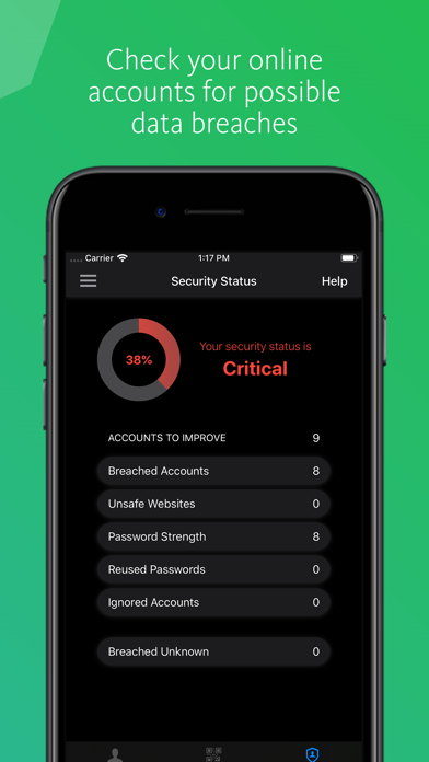 The new Security Status feature shows you at a glance how secure your passwords, accounts, and listed websites are, and whether any of your credentials have already been compromised. You can then take immediate action to improve your online security.