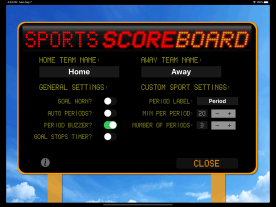 * Mutiple sports - choose from hockey scoreboard, football scoreboard or basketball scoreboard. Or create your own Custom sport.