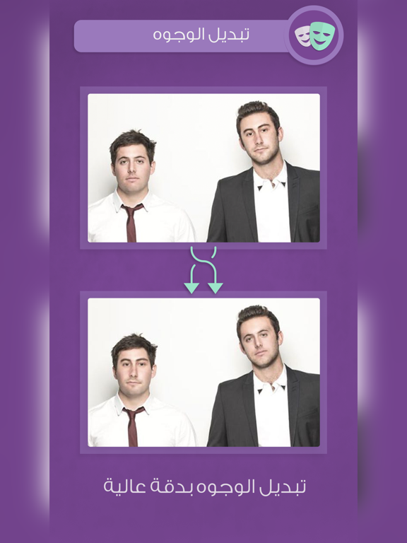 برنامج استبدال الوجوه برنامج بسيط وممتع يقوم باسبتدال وتغيير الوجوه في الصورة يمكنه التعرف على الوجوه واقتصاصها وتركيبها على الاشخاص المختلفين لتظهر لديك صورة يمكنك مشاركتها والمزاح بها مع اصدقائك يمكن اجراء تبديل الوجوه على عدد وجوه يفوق ال ١٢ وجه في نفس الوقت , أي يمكنك تغيير وجوه ١٢ شخص في ان واحد بضغطة زر فقط