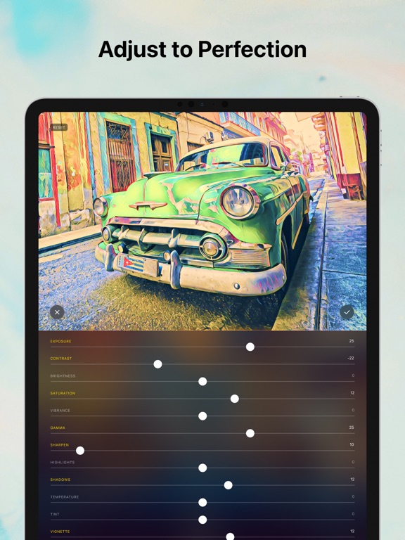 After applying art filters, enhance the results using image enhancement tools. In the photo enhancement mode, you can find a wide range of photo tools like exposure, sharpness, contrast, brightness, etc.