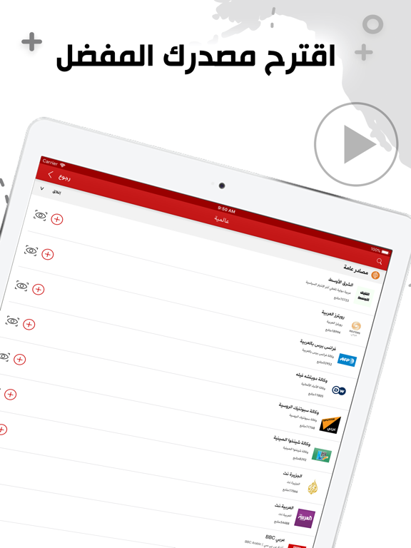 استمتع بـ 2000 مصدر إخباري متنوع، واختر منها ما تفضله، لمتابعتها خلال اليوم.