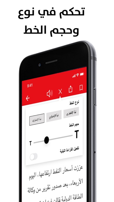 إتاحة استخدام التطبيق وتصفح الأخبار واستخدام جميع الخصائص بالوضع الليلي؛ لقراءة أكثر راحة.