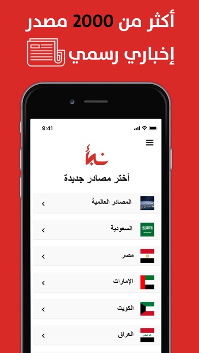 نقدم لك تطبيق نبأ الإخباري الذي يتمتع بـ أكثر من 2,000 مصدر موثوق من مختلف أنحاء العالم، لنعرض عليك رؤية موضوعية للأخبار والأحداث من شتى التصنيفات التي تهمك.