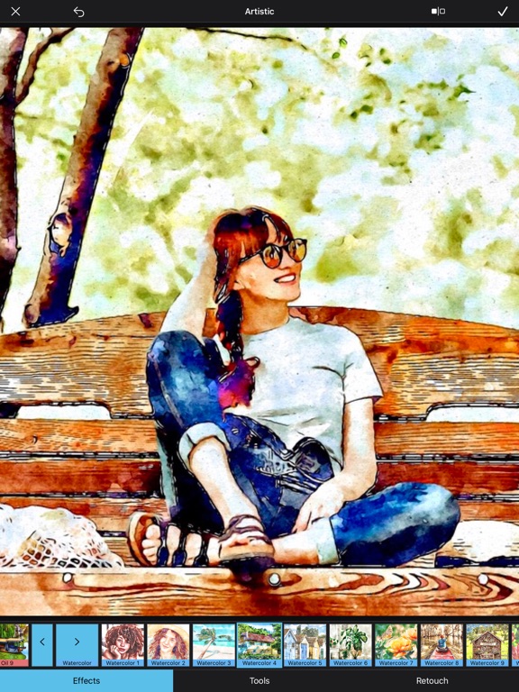 All effects are fully adjustable. Our state-of-the-art retouch tools* allow you unlimited, pixel-precise alterations in real-time, all at your fingertips. Share your finished masterpieces on social media and let friends and family take part in your artistic journey.