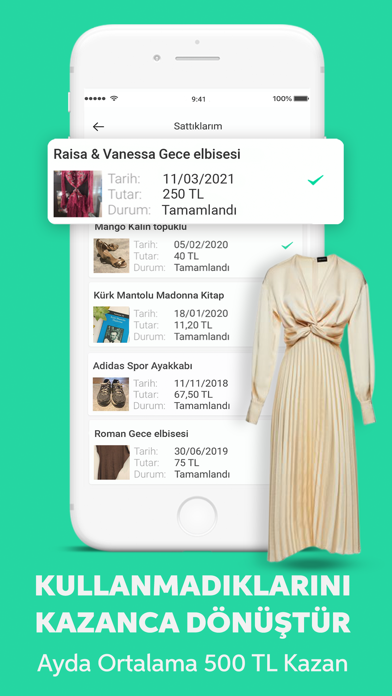 Bir zamanlar severek aldığın elbise, ayakkabı, parfüm, takım elbise, çanta, gözlük, saat, ceket, pantolon, oyuncak, kitap aylardır dolabın bir köşesinde kullanılmayı bekliyor. Giymediklerini 2.el alışverişin güvenilir adresi Dolap'a Yükle, Sat paraya dönüştür - kazanmanın tadını çıkar!