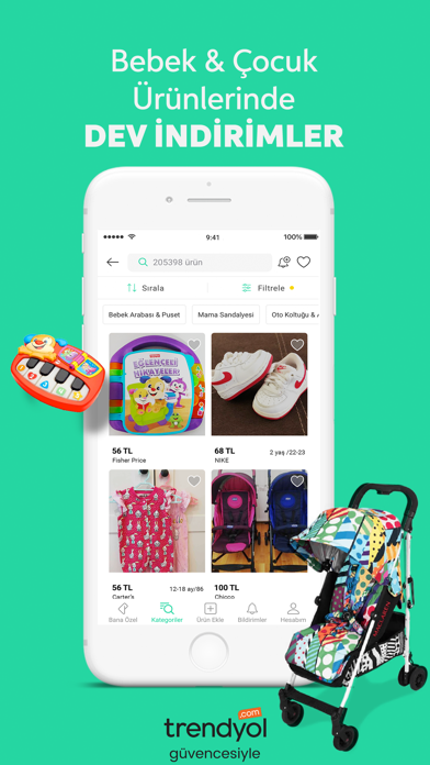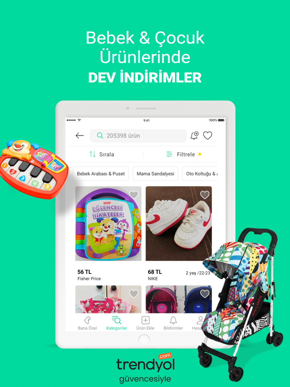 Evde bir minik var ve çok mu hızlı büyüyor? Küçülenleri, giydiremediğin kıyafetleri, elbiseleri, ilgisini kaybettiği oyuncaklarını Dolap'a yükle, para harcamadan yeni ciciler almanın keyfini çıkar! Kullanılmayan ikinci el, sıfır, yürüteç, ana kucağı, oto koltuğu ve diğer ikinci el ürünlerini Dolap’ta sat, ev ekonomisine katkıda bulun!