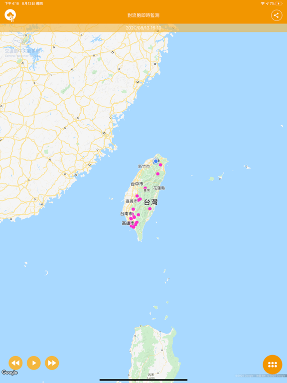 •對流胞即時監測-藉由雷達觀測所偵測到現有對流胞的位置;