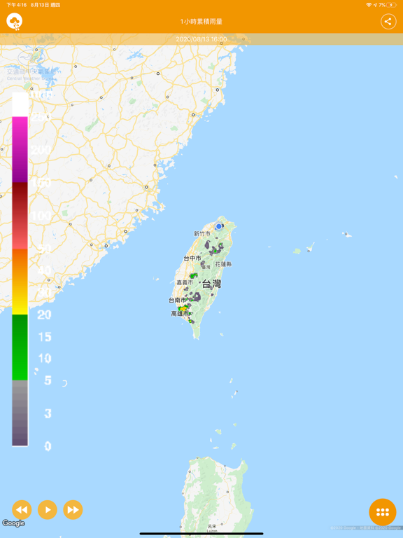 •1小時與24小時累積雨量分佈-全臺雨量觀測站過去1小時與24小時之實測雨量分析;