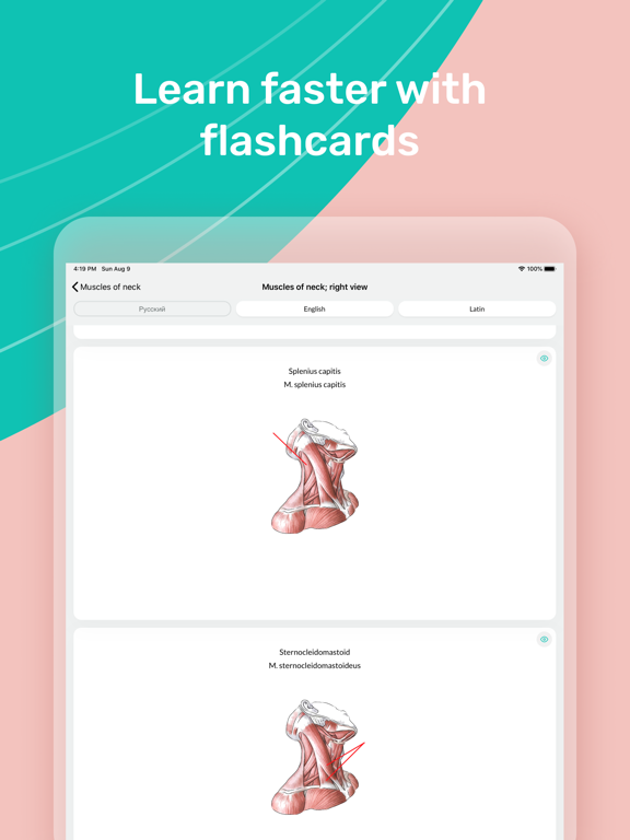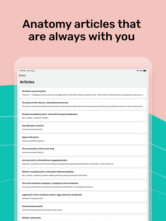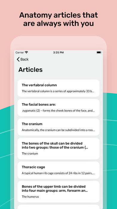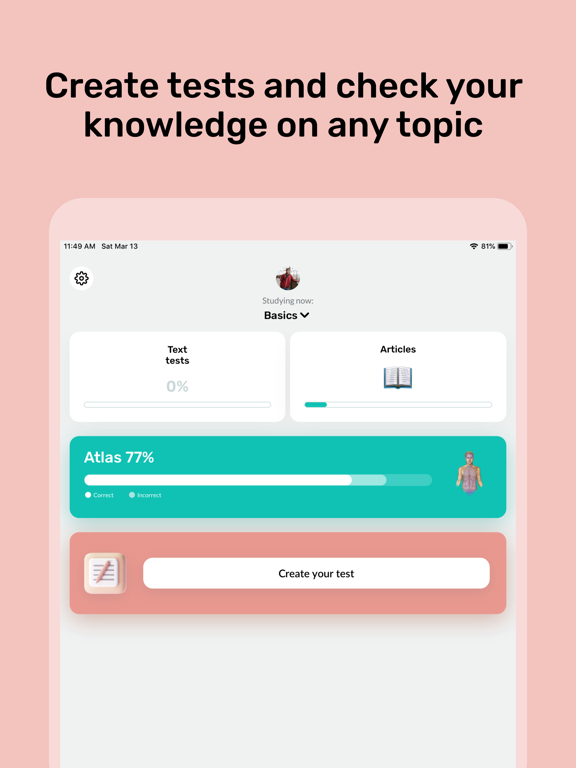 In the app you will find an anatomical atlas with more than 10 000 flashcards, anatomical articles, and quizzes for more efficient memorization of anatomical structures.