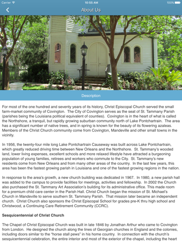 The Christ Episcopal Church in Covington, LA mobile app is packed with features to help you pray, learn, and interact with the church community. App Features Include: Events, Prayer Wall, Photo Submissions, Prayer Journal, Contact Information, GPS Directions, Service Times, Ministries, Bible, Photo Gallery, Social Media integration, and Push Notifications