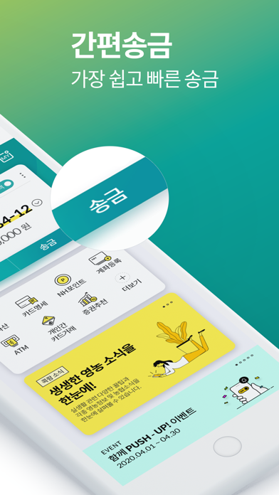 ■ 송금 : 보안카드나 OTP가 없이 송금이 가능합니다. 계좌번호뿐만 아니라 휴대전화번호, 음성 및 QR송금 등 간편송금이 가능합니다.