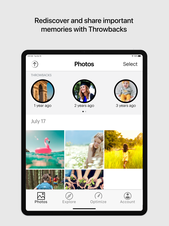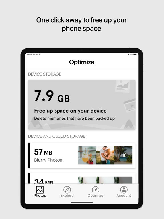 • Optimize: De-clutter your gallery and free up space by easily by getting rid of photos that are similar, blurry, old screenshots, and more.