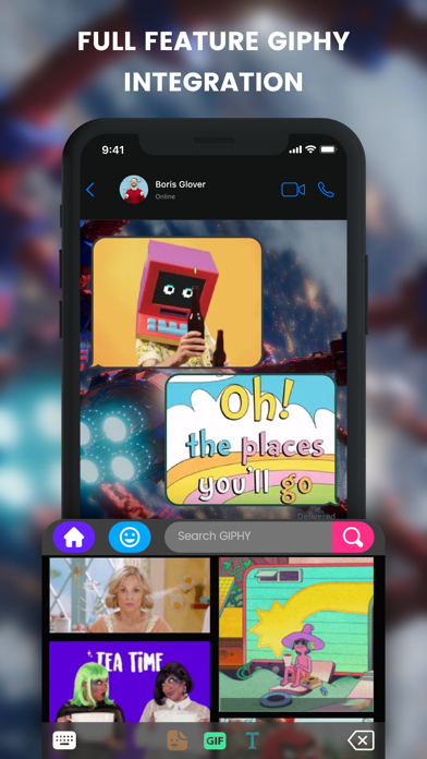 * Full feature GIPHY™ integration providing instant access the entire GIF library.