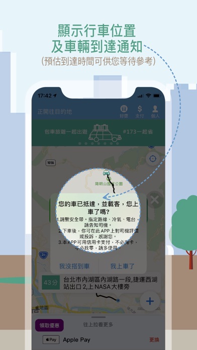 173叫計程車讓乘客可以選擇折扣服務的司機,享受便宜、迅速、優質的計程車。 功能包括免費下載、機場接送、包車、預約用車、安心簡訊、分享旅程、司機評價、折扣優惠、女司機、微搬家、觀光、新車、英語、日語等多樣化服務。 173App的司機願意提供優惠,網羅台灣大車隊、大都會等車隊合法、優質司機提供服務,可和Uber競爭。 173 派遣的是合法司機與Uber派自用車有所不同 。 服務網站 http://www.0173.tw/ 關鍵字:計程車, 小黃