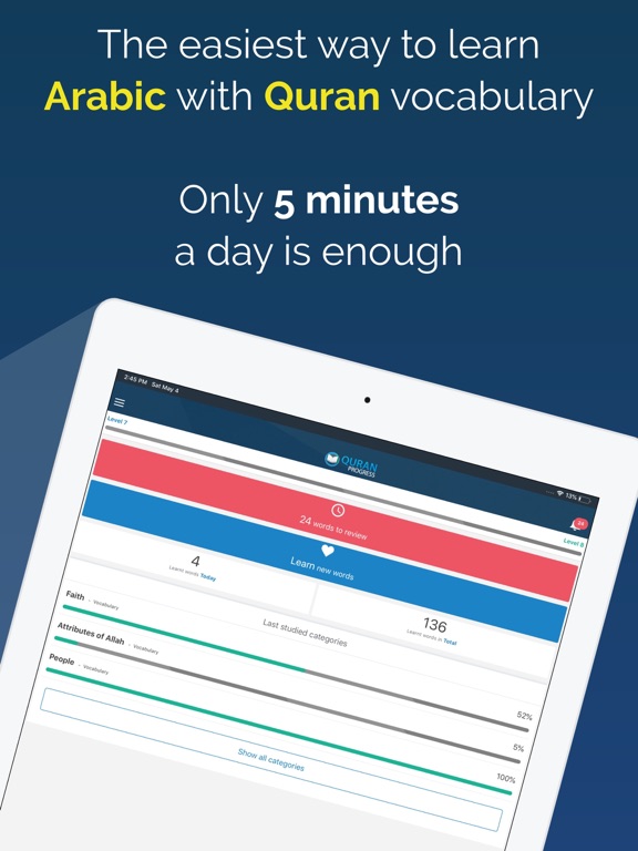 Quran Progress allows you to learn Quranic Arabic whilst having fun!