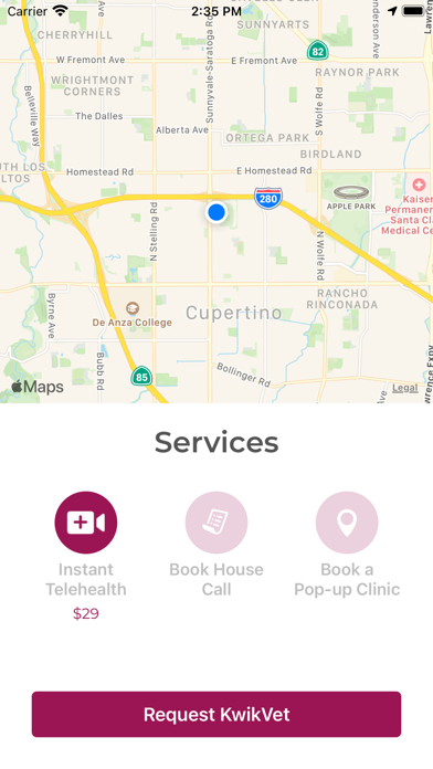 An easy way to connect you to outstanding quality veterinarian services at the touch of a button. Using geolocation, the app connects you to the closest veterinarian-technician team in your area.
