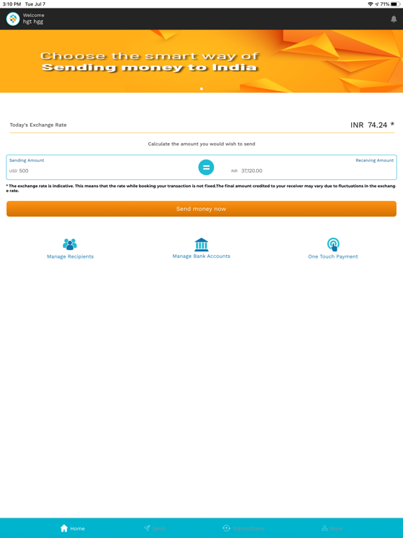 • Send money to India in just a few taps