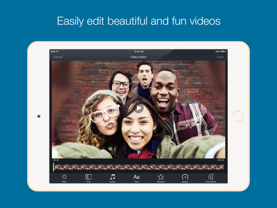 • Share - Upload your edited videos to your favorite social networks, including Youtube, Facebook, Instagram, Vine, Twitter, Tumblr, and more.