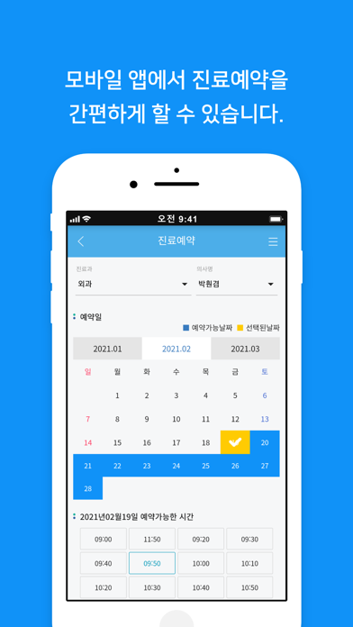 모바일 앱에서 진료예약을 간편하게 할 수 있습니다