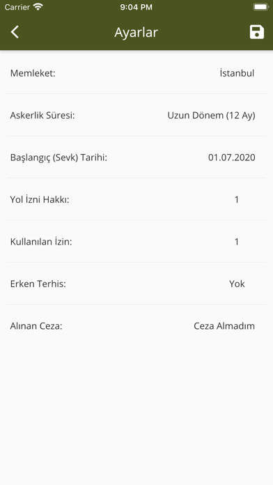 Ayarlar kısmından askerlik bilgileri girildikten sonra kaydet diyerek şafağı hesaplayabilirsiniz.