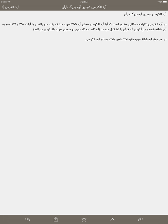 او گفت : معلوم است كه تو آیه الكرسی زیاد می خوانی. گفتم : بله ؛ همین طور است. ولی تو از كجا فهمیدی. گفت برای اینكه این آیه 50 كلمه و 175 حرف دارد. من از زیركی حافظه او تعجب كردم. آنگاه به من گفت : هر كه آیه الكرسی را بسیار بخواند سختی های مرگ بر او آسان می شود.