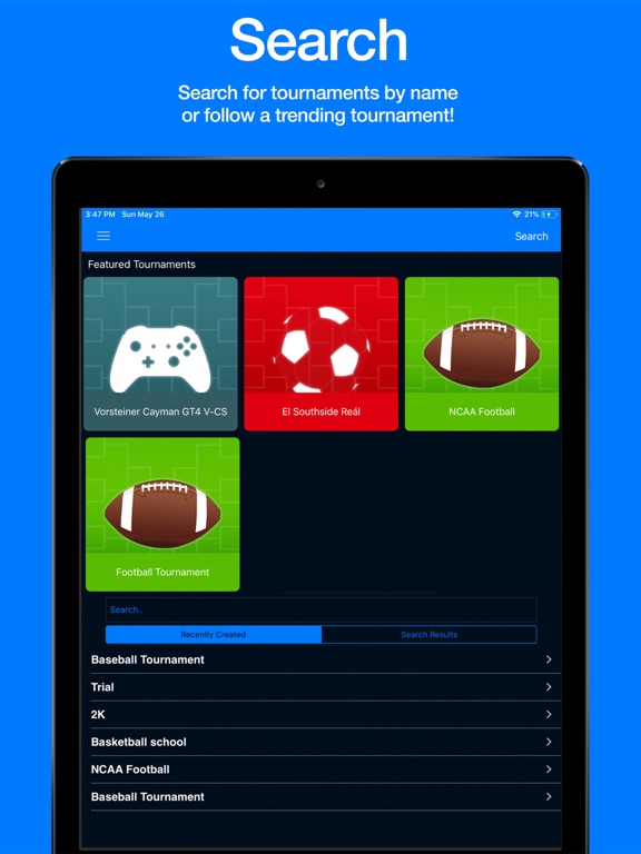 * Subscribe to tournaments to follow your friends and family’s matchups