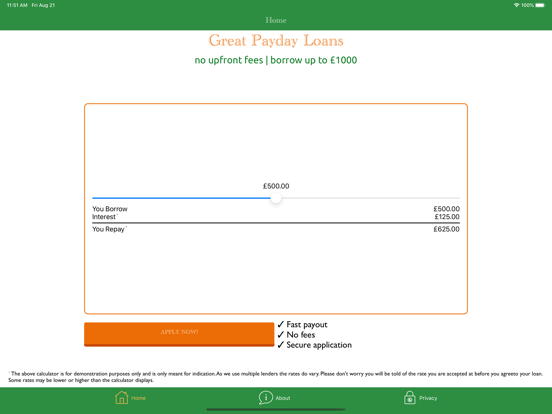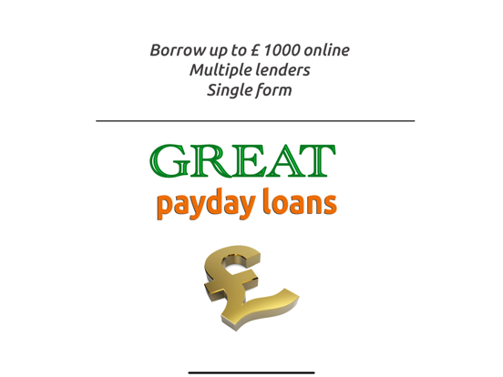 Great Payday Loans is your online place to borrow cash between £100 and £1000 within a single app! Process is simple: - complete the few steps application form - our payday lender panel than matches you with the lender that is most likely to borrow you the money - you will be connected with the lender that best fits your requirements - you decide whether you will get the loan or not That's it! Simple!