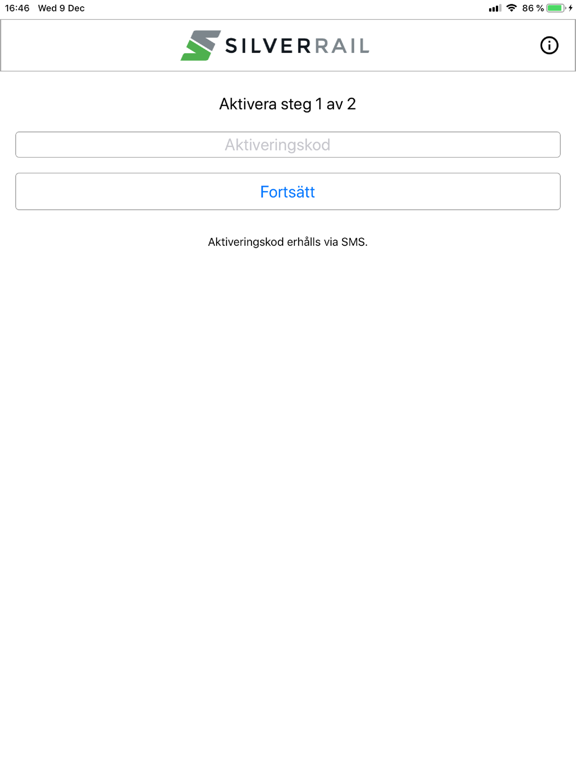 Aktiveringskod distribueras separat till behörig personal via SMS. En personlig PIN-kod väljs för att skydda informationen.
