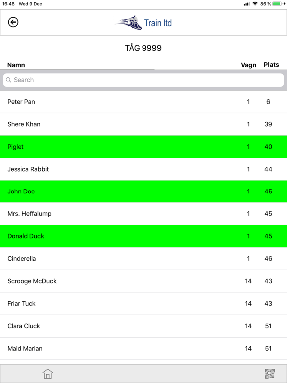 Hämtning av passagerarlistor från server sker via HTTPS. Efter att listorna laddats ned lokalt till appen kan passagerare även viseras även utanför täckning i mobilnät eller wifi (offline-funktion).