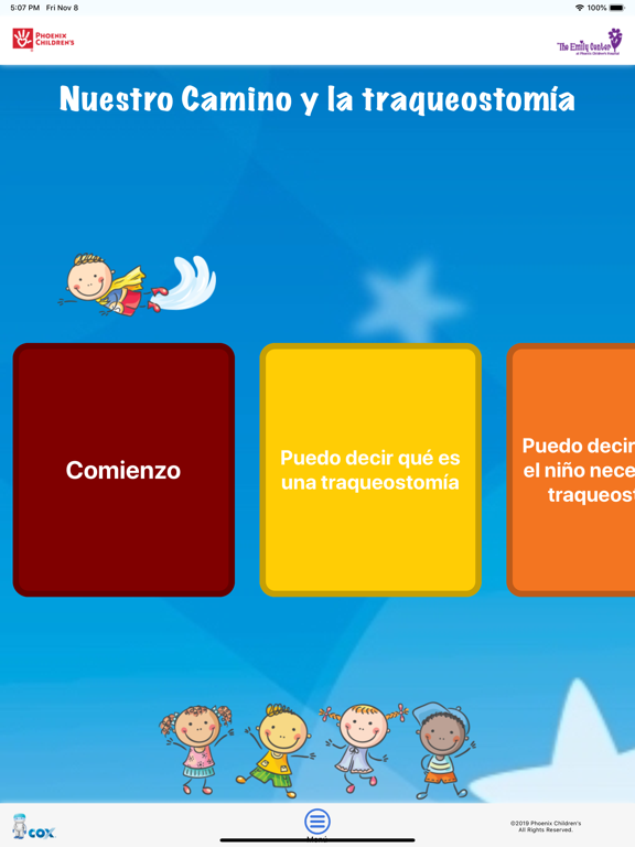 The Emily Center en Phoenix Children’s Hospital presenta Nuestro Camino y la traqueostomía para que las familias con niños que necesitan una traqueostomía sepan identificar lo que necesitan saber antes de irse del hospital. Partes de esta aplicación podrían utilizarse en las consultas en la clínica y en la sala de emergencia.