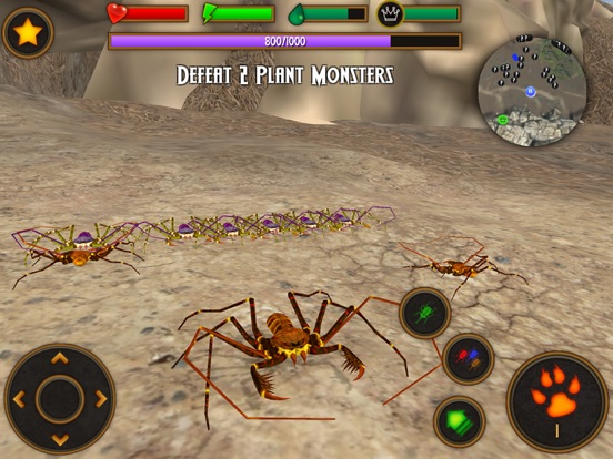 Enter the insect world as a spider and build your colony. Finding worker spiders will help to establish your colony. When you find 6, the Queen will arrive. When your colony is large enough, the queen will arrive. You will also find yourself in head to head battles against Ant colonies, Rhino Beetles, Ladybugs, Praying Mantis, Wasp, and Honey Bees, and Scorpion.