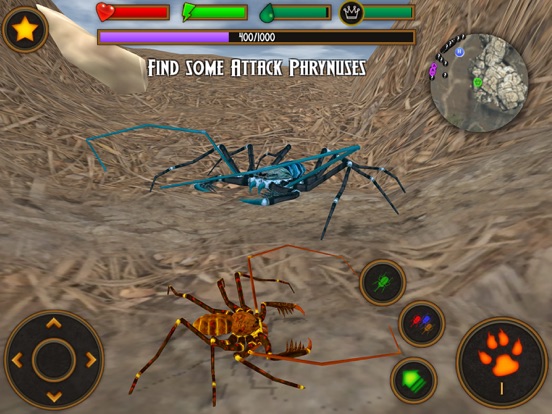 Beware Arachnophobes, the Phrynus are coming!! Also known as the whip spider or tailless whip scorpion, its the creature that looks like a combination of a spider and a scorpion. In this game, you take Control of your very own arachnid and head out to a huge insect world. Establish your colony, feed the Queen, find Worker and attack arachnids, and go out in search of the insect bosses. The ultimate insect simulator you have been looking for.