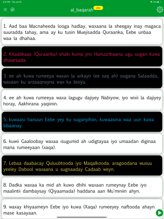 This Quran Translation is considered to be one of the best translation available in Somali language.