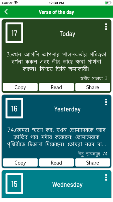 * Share verses with friends using social networks( Facebook/Twitter), email, or SMS (text).