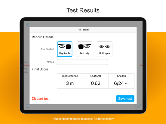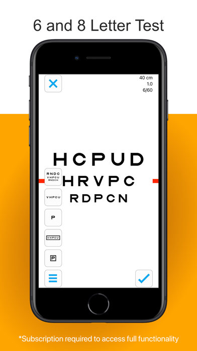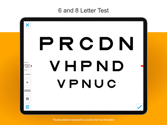 To obtain full access to all visual acuity tests, reading tests and fixation targets you need to purchase an auto-renewing subscription on a monthly or yearly basis.
