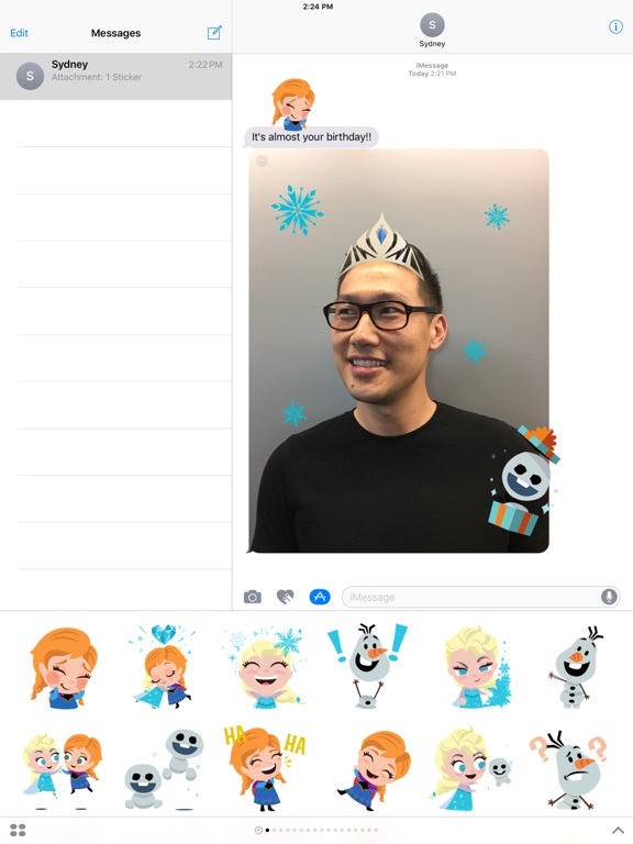Make your iMessages cooler with this Frozen sticker pack that includes characters like Elsa, Anna, Olaf, and Snowgies.