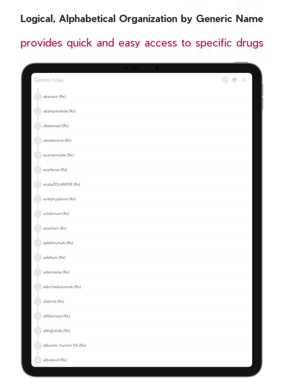 Choose the drug handbook trusted for nearly 30 years! Download the FREE app and view selected topics. (Approximately 10% of the content is viewable in the free app and tapping on the locked topic will launch the in-app purchase screen).