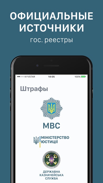 Національний мобільний додаток для онлайн ПЕРЕВІРКИ та оплати штрафів ПДР, боргів в юстиції, покупки електронних полісів автоцивілки (ОСЦПВ). Перший мобільний додаток в Україні, який відповідає концепції "Держава у смартфоні" та розвиває державні послуги в смартфоні в області авто-тематики з 2016 року.