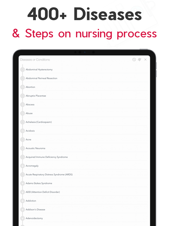Features all nursing diagnoses & interventions. 400+ diseases. Steps on nursing process. Built-in calculators. Prioritized interventions.