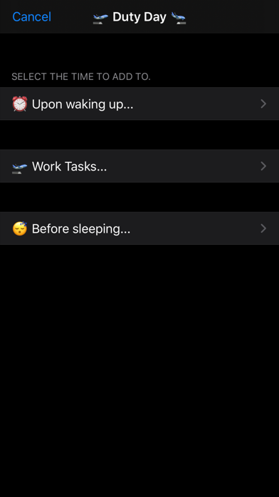 The Aviation Study provides a multiday pre-set framework for collecting aviation related research data. Split into Off-Duty Days and Duty Days. Participants are prompted to complete a sleep diary after their main sleep episode. The participant is then prompted to complete three PVT and KSS responses during off-duty days. On duty days, the participant is prompted to complete a PVT and KSS pre- and post-duty. They are also prompted to complete a PVT, KSS, hassle factors, use of fatigue countermeasures, and inflight rest at the top of descent for each flight. The participants also complete a sleep diary before bed. The number of flights within a duty day can be adjusted. The aviation study also includes a pre-study baseline questionnaires that can be completed at study enrollment.