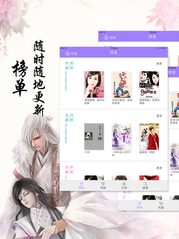 最畅销的耽美小说,完美排版,部部好看,让你一次腐个够! 为你倾情奉献最好看的耽美小说!精编精排,附带书城,免费下载,畅爽的看书体验尽在这里! 舒适流畅的阅读器,支持字体、皮肤等多种设置。支持离线下载功能,让读者无网阅读更轻松,全本读书放肆去看。 同时改进了传统小说阅读器中的多种细节,对于每一个细节,我们都力求最易用,给您完美的用户体验。