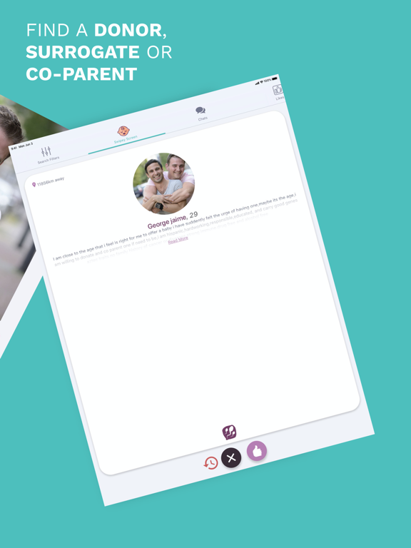 Simply swipe, match and connect until you find the right egg donor, sperm donor, embryo donor, surrogate or co-parent for you.
