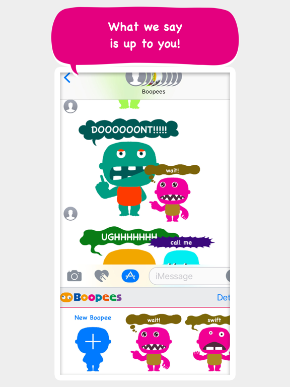 -Slap those Boopees into any iMessage conversation, and have them sumo wrestle with your friends!