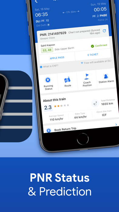 Your all-in-one Indian railway app. Use India's most reliable trains app to check PNR status, train status updates, train route & running status, ticket availability, seat maps, station alarm & reminders, train enquiry and more. Highly reliable information on Train between stations, Train Delays, Live Train timetable, train enquiry, directly from NTES & IRCTC. Loved by more than 1 crore Indian Railways travellers, ixigo trains app is one of the highest rated Indian Railways App.