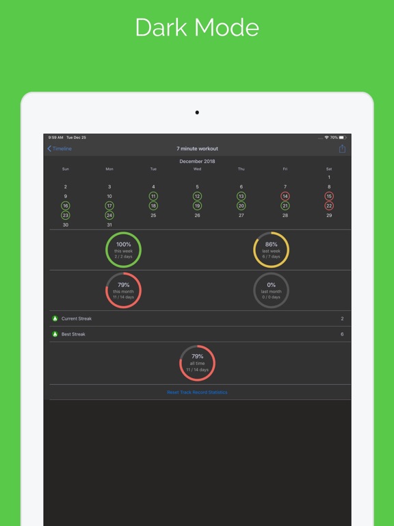 • Interactive streak calendar allowing you to see and change your previous history if you missed recording a habit