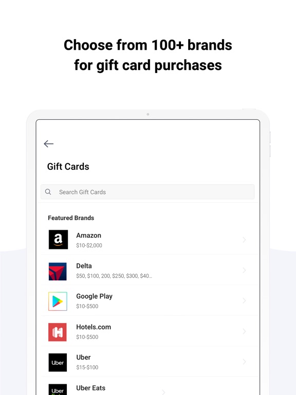 - Real time gift card purchasing from major brands including Amazon.com